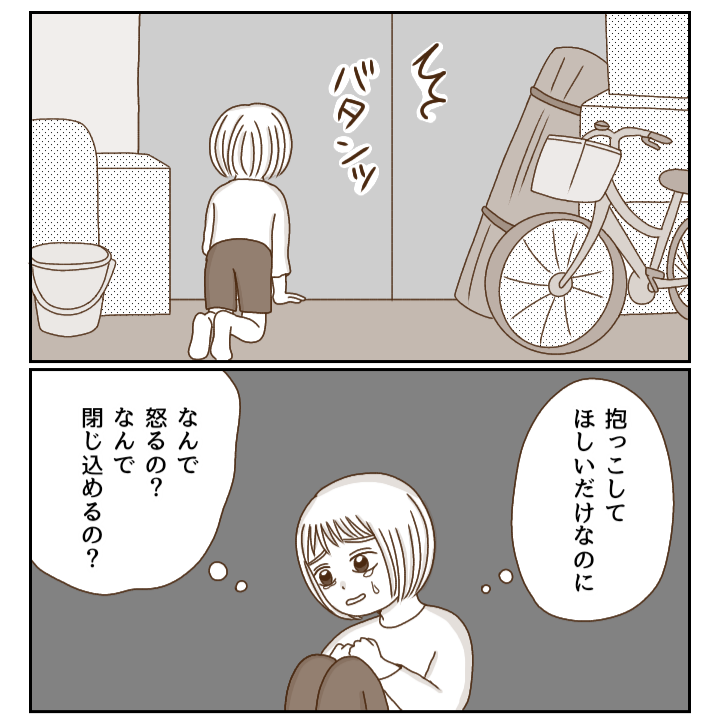 母が耐えられなくなって物置に閉じ込めます。
