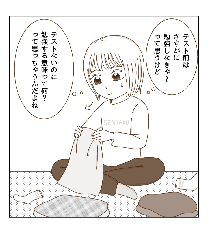 テスト一週間前でもないのに勉強する理由がわからなかったです。