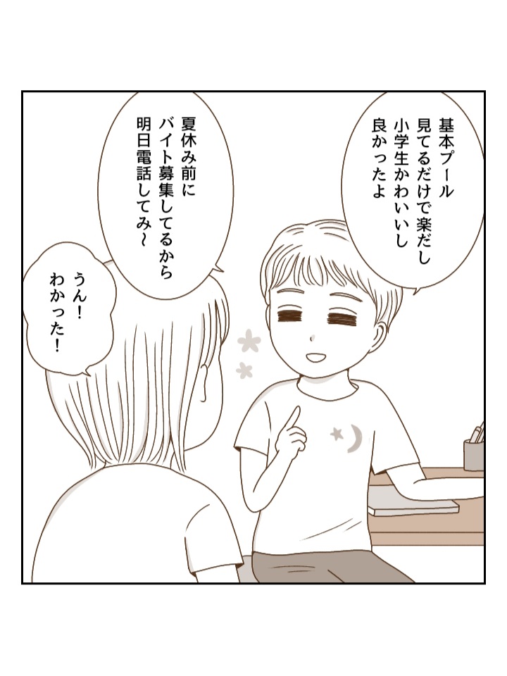姉が高一の頃にやっていたプールのバイトを選びました。
